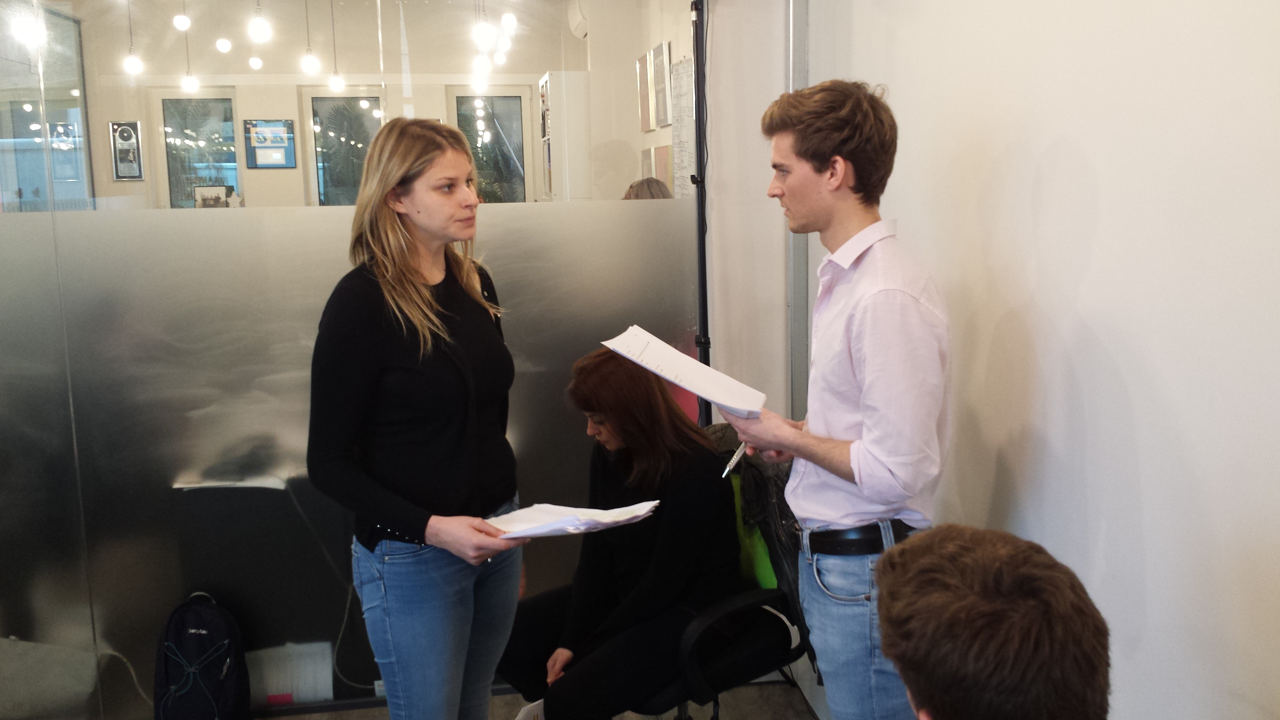 Rehearsals and recording with actors Elizabeth Boag, Georgina White and George Longworth.